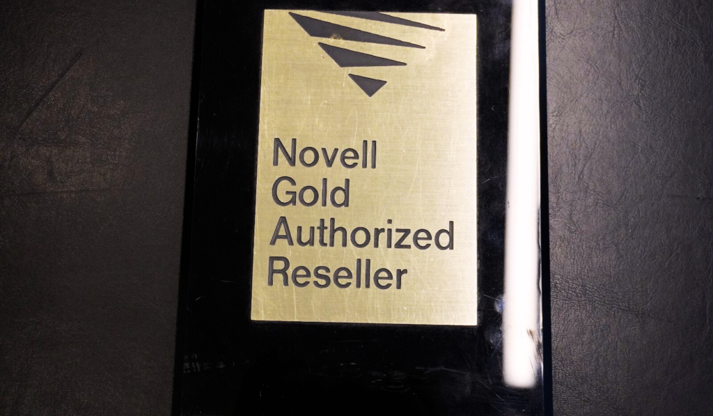 A certificação Novell Gold Authorized Reseller, representando excelência, confiança e reconhecimento oficial no mercado de tecnologia.